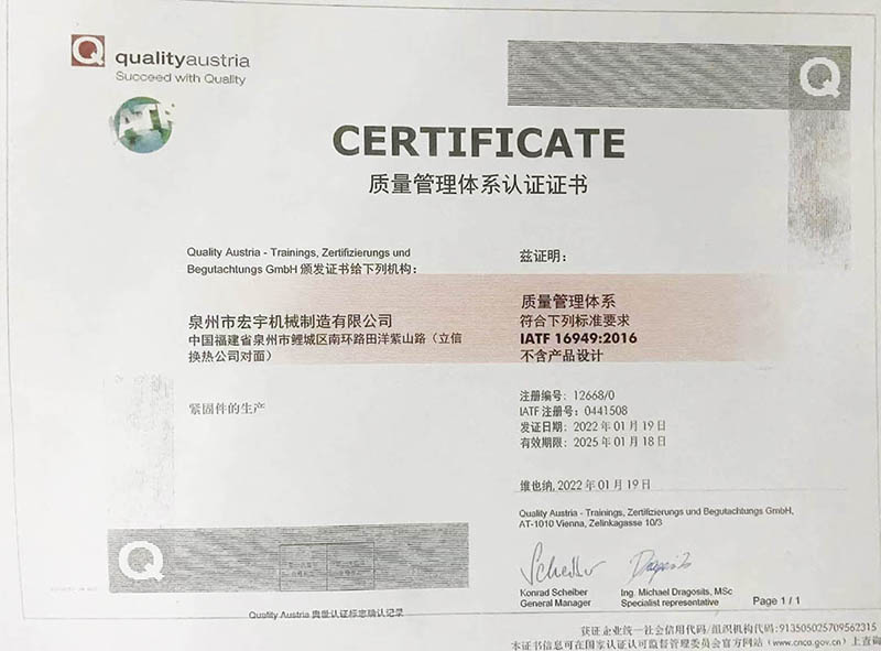 我公(gōng)司以IATF 16949:2016質量(liang)管理體系(xi)爲導向,對(duì)生産全過(guò)程進行管(guǎn)理,使我公(gong)司所生産(chan)的産品品(pin)質優良、價(jià)格合理。公(gong)🐇司擁有一(yi)批高🈲素質(zhì)的領導班(bān)子和職工(gong)團隊,依靠(kào)不斷創新(xin)㊙️、追求卓越(yue)的理念,不(bu)段引進新(xīn)技術,開發(fa)新産品,以(yi)完善我公(gōng)司的産品(pin)系列,适應(yīng)市場的不(bu)斷需求,使(shǐ)宏宇産品(pǐn)能夠立足(zú)于⛷️激烈的(de)市場💞競争(zhēng)中。